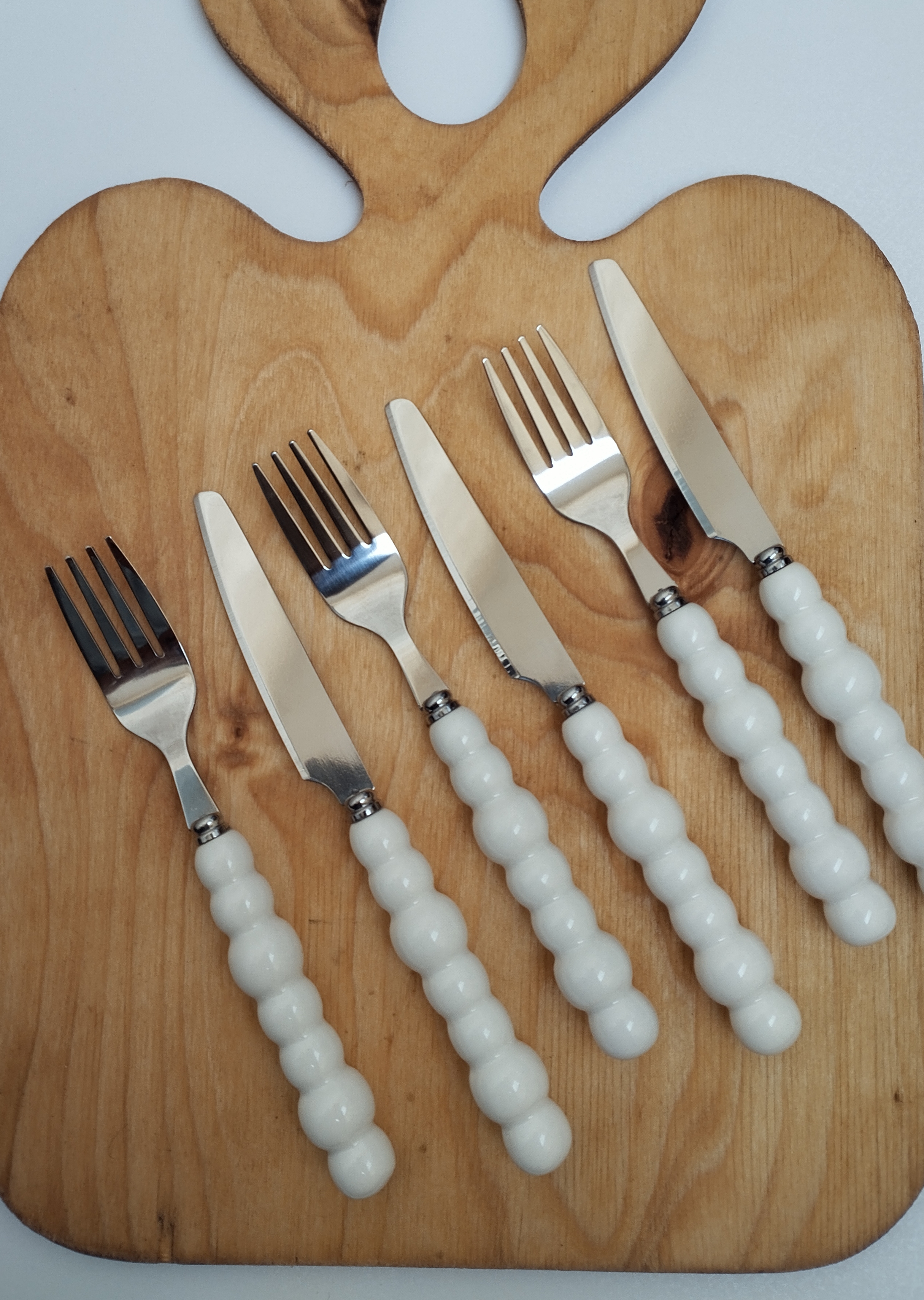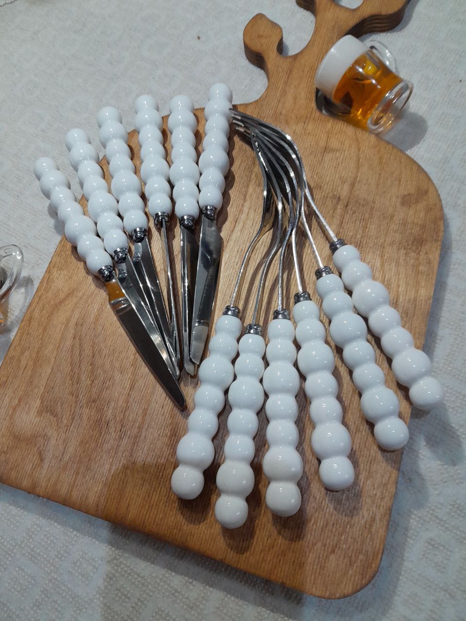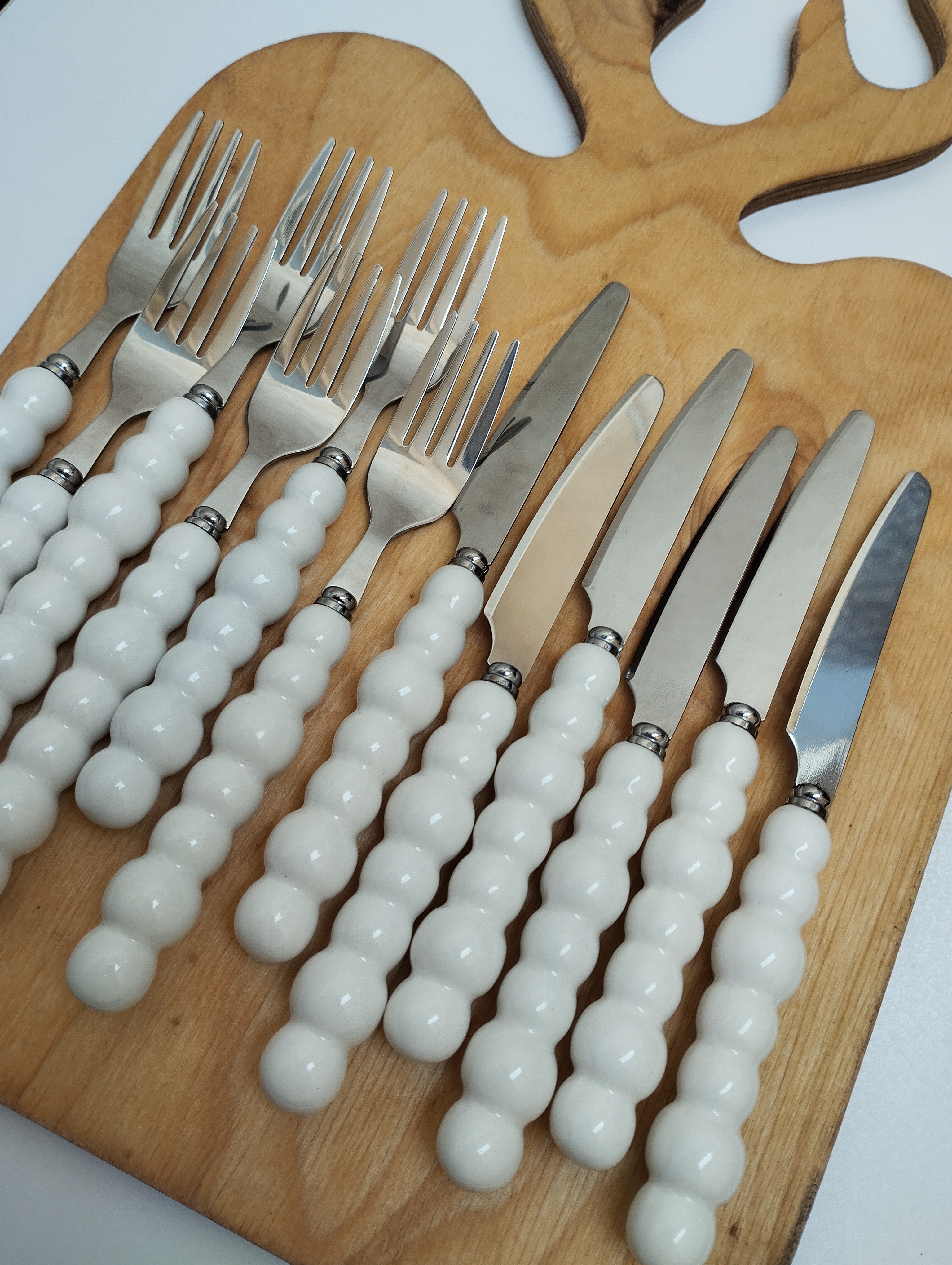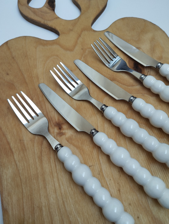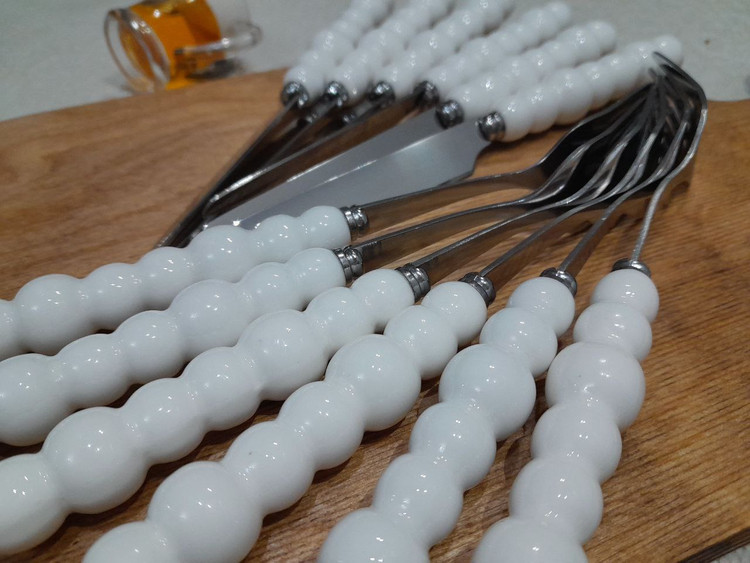 کارد و چنگال میوه خوری 6 نفره دسته سرامیکی برندABLLمدل مرواریدی ABLL knife