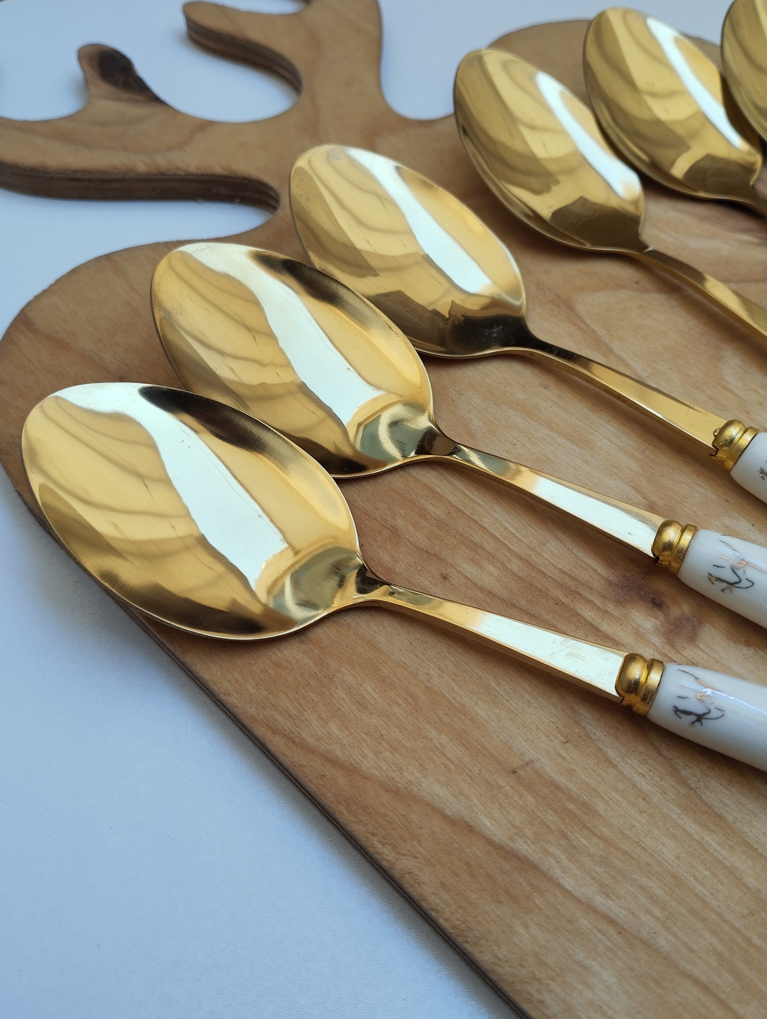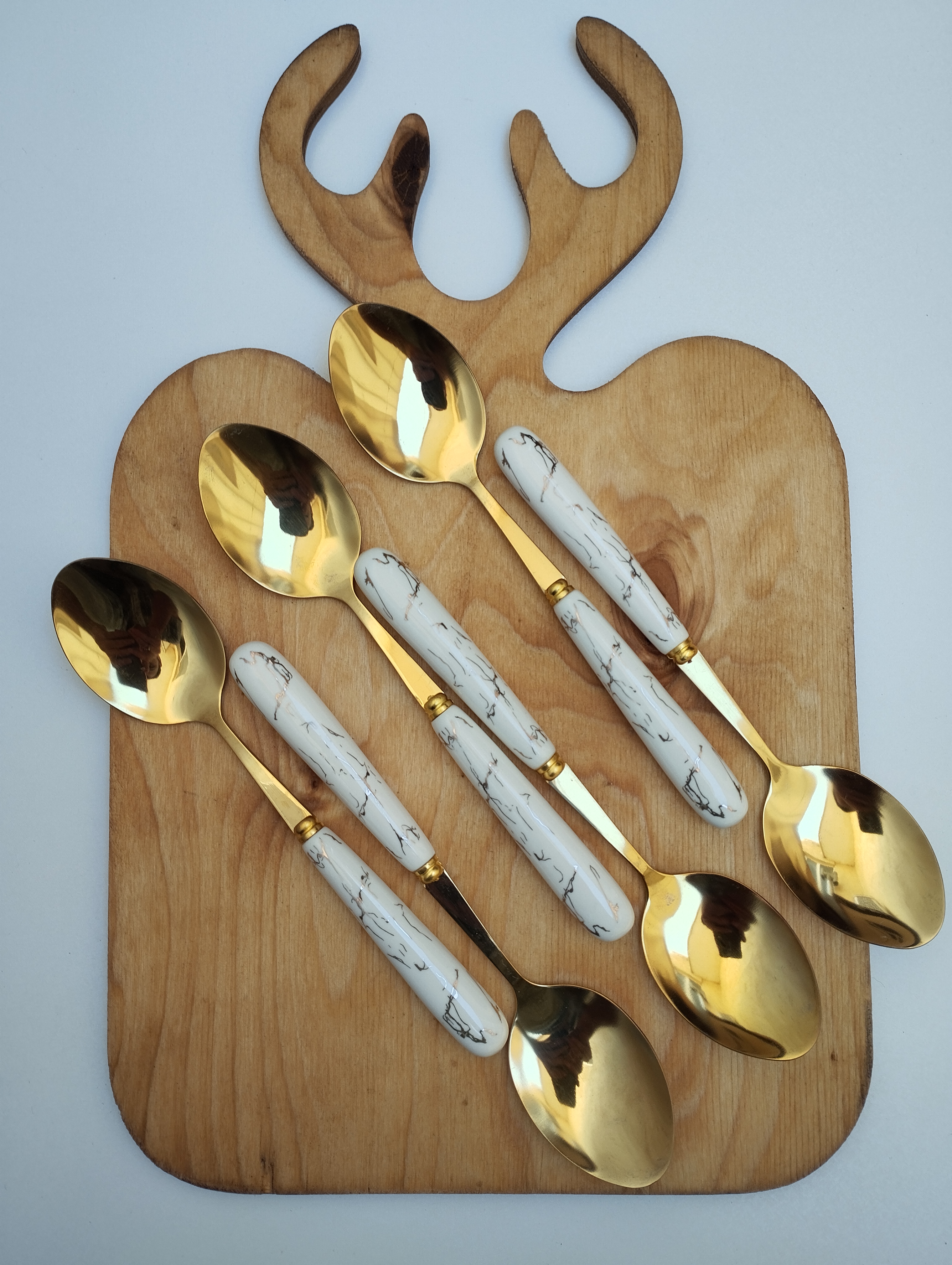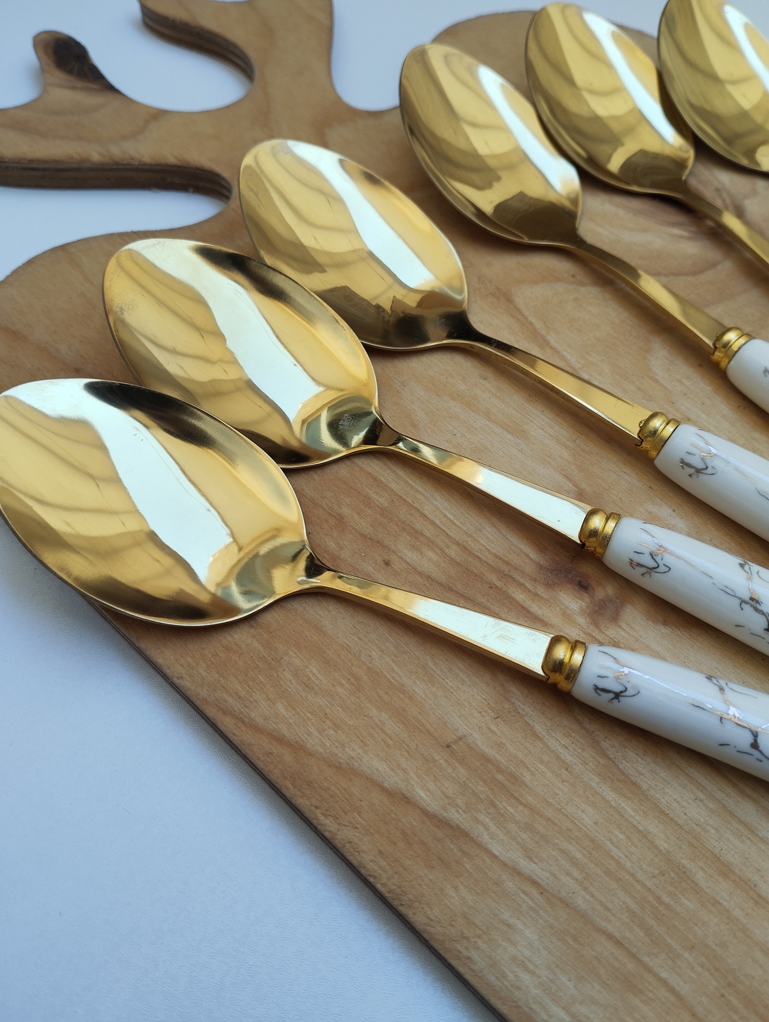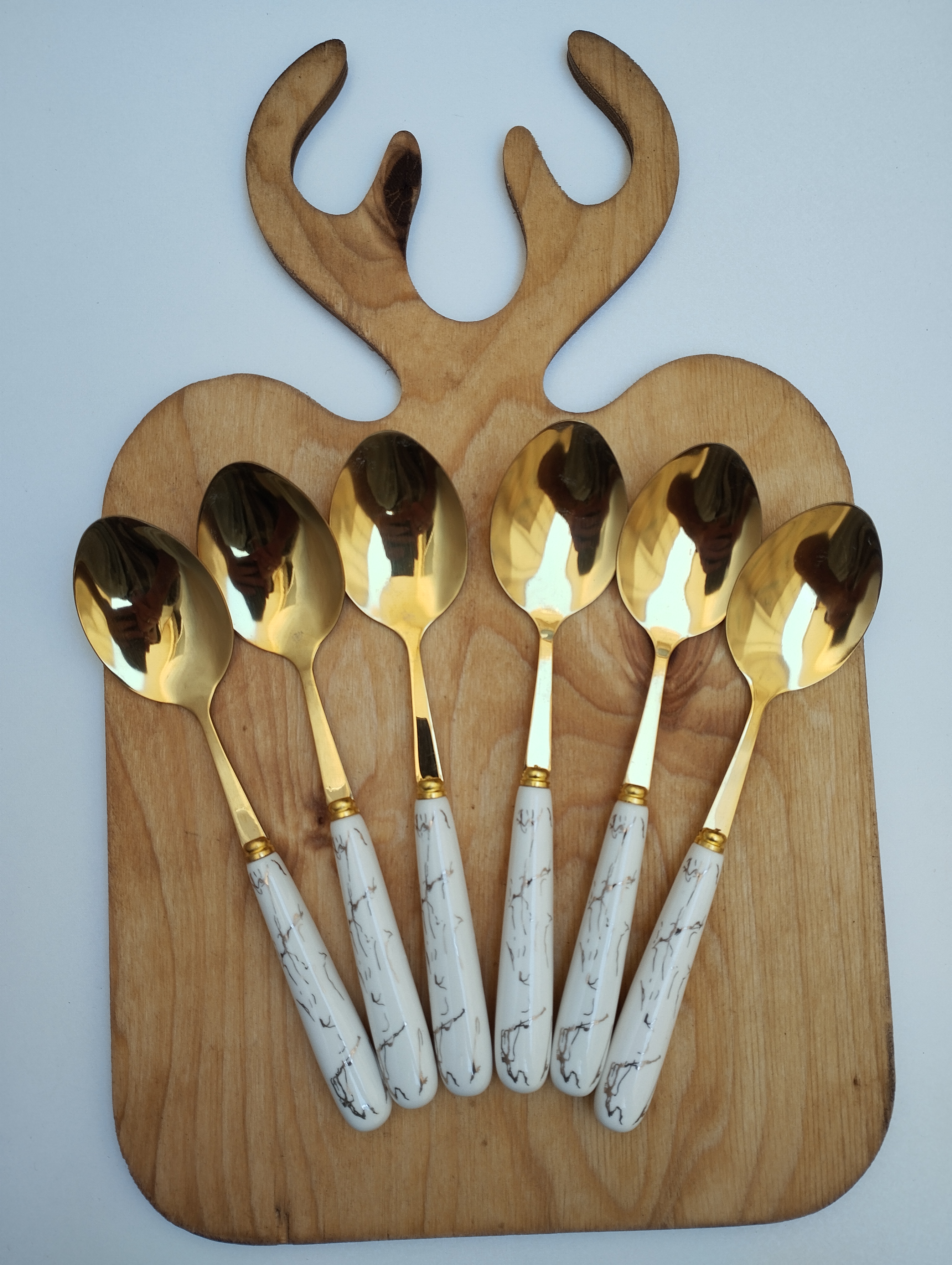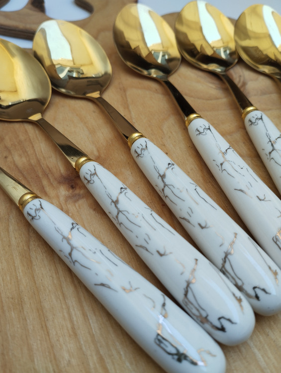 قاشق غذاخوری 6نفره دسته سرامیکی طرح ماربل برند ABLL