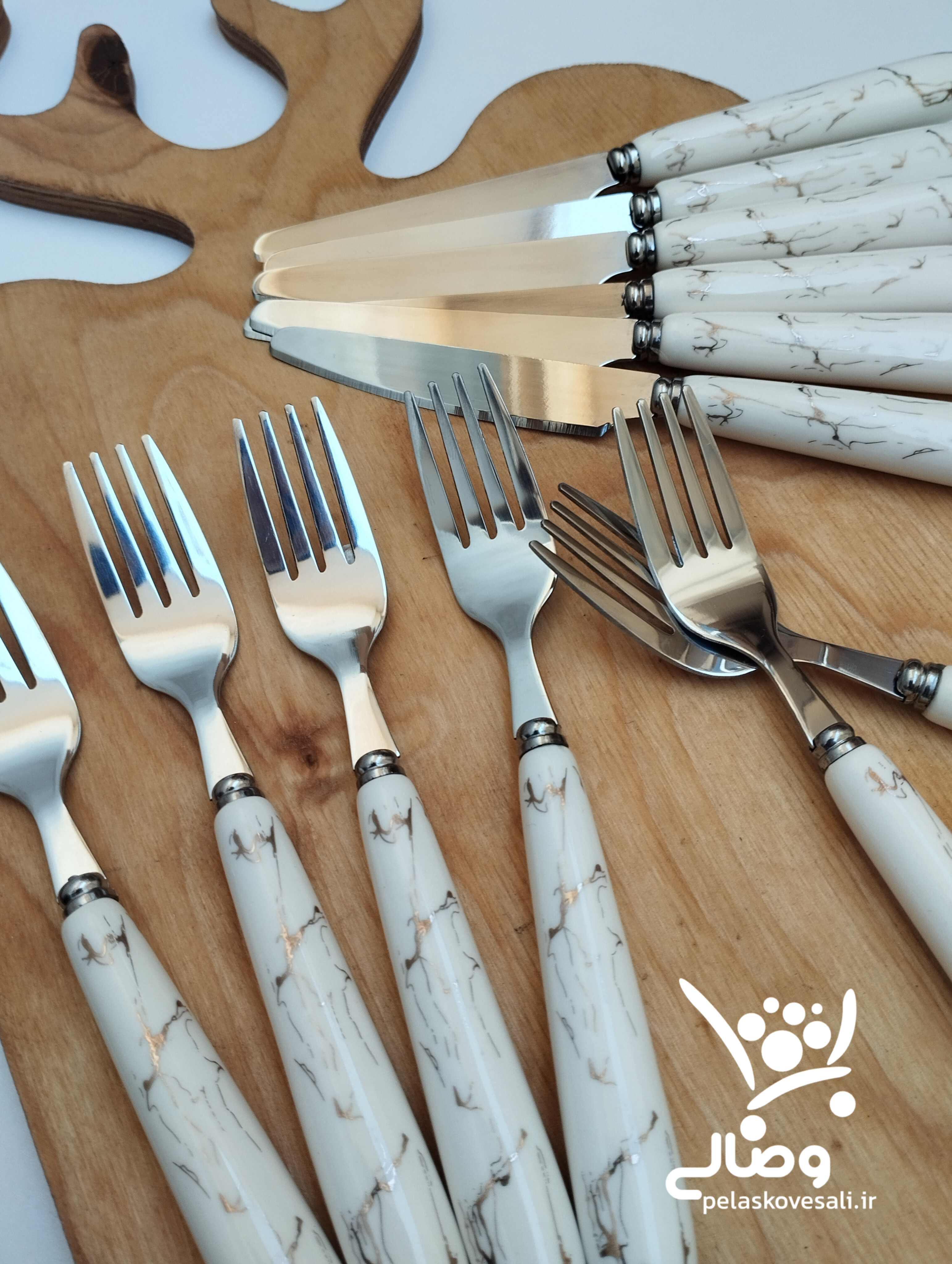 کارد و چنگال میوه خوری دسته سرامیکی طرح ماربل طلایی در#پخش_وصالی